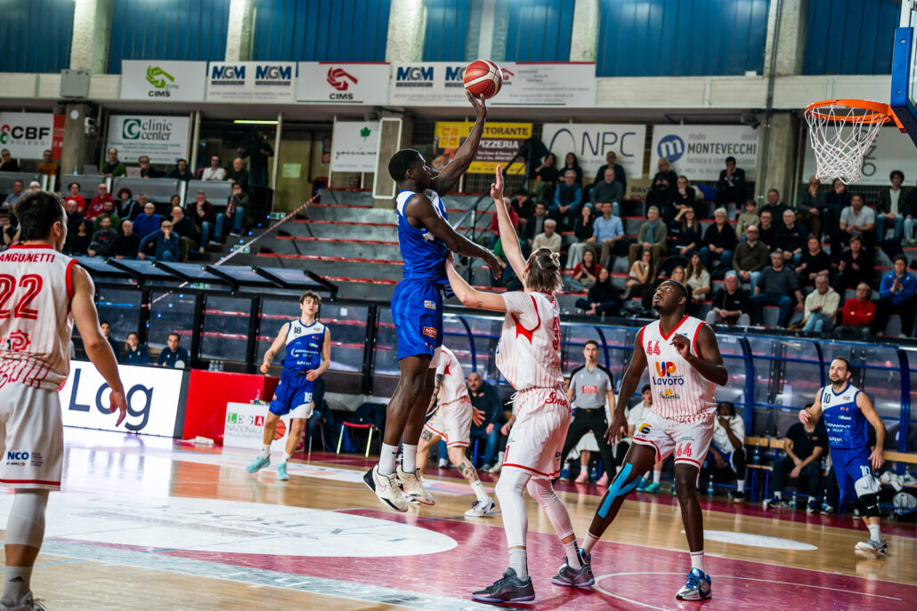 Dopo il 13-12 del 10’, Imola allunga in avvio di seconda frazione e da lì in avanti non lascia mai il timone del match: Tio prova a tenere a contatto i suoi, giganteggiando in area, ma è il solo ad opporre resistenza e Imola mantiene per lunghi tratti della sfida un vantaggio sopra la doppia cifra. Ferrara ci crede intorno alla metà del terzo quarto, quando torna fino al -3, ma ai padroni di casa basta un’accelerata per riportarsi in fretta sul +10 grazie ai canestri di Moffa e Sanguinetti. L’ultimo quarto vede l’Adamant non riuscire mai a ricucire, con Imola che vince meritatamente.